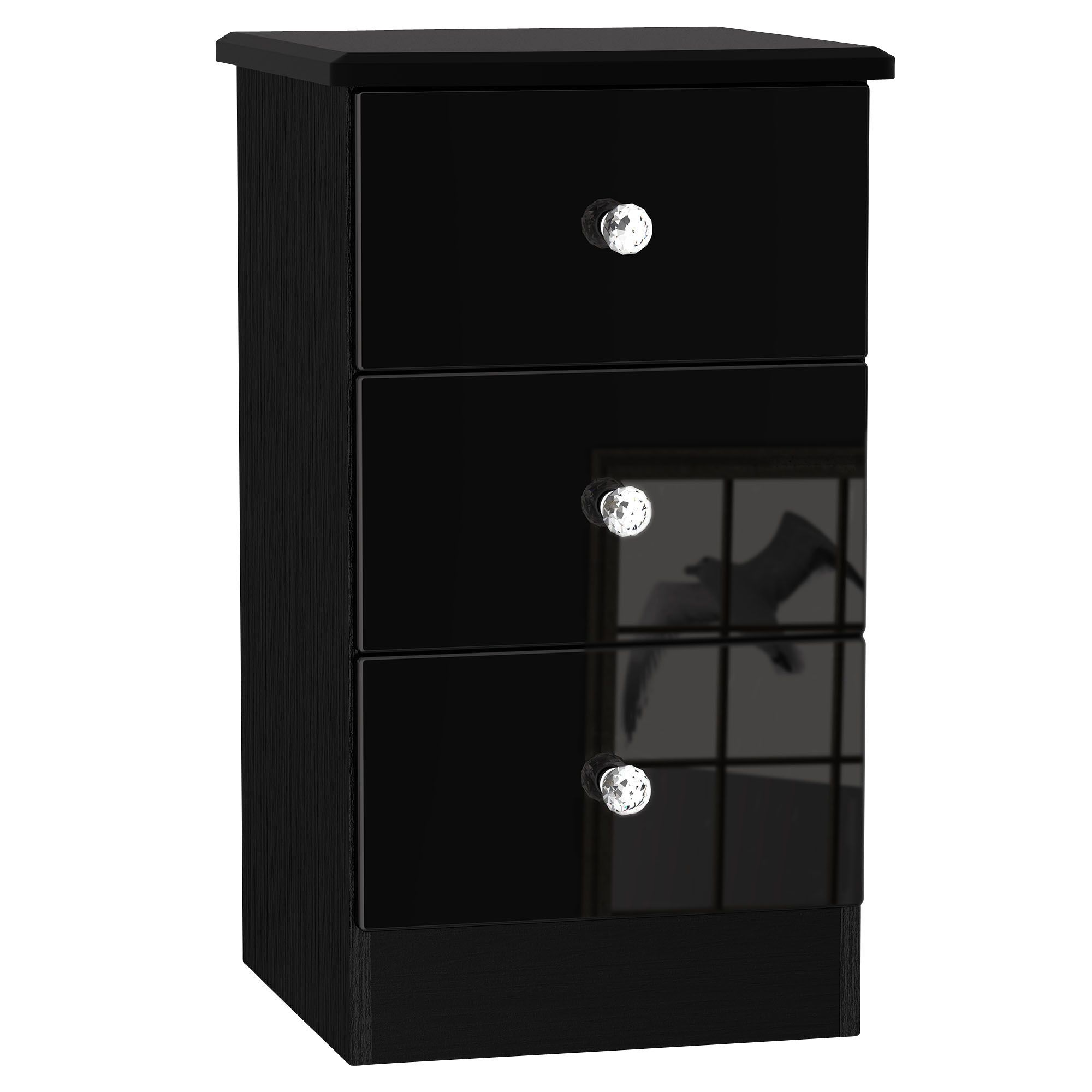 Noire Black High gloss 3 Drawer Bedside chest (H)700mm (W)400mm (D